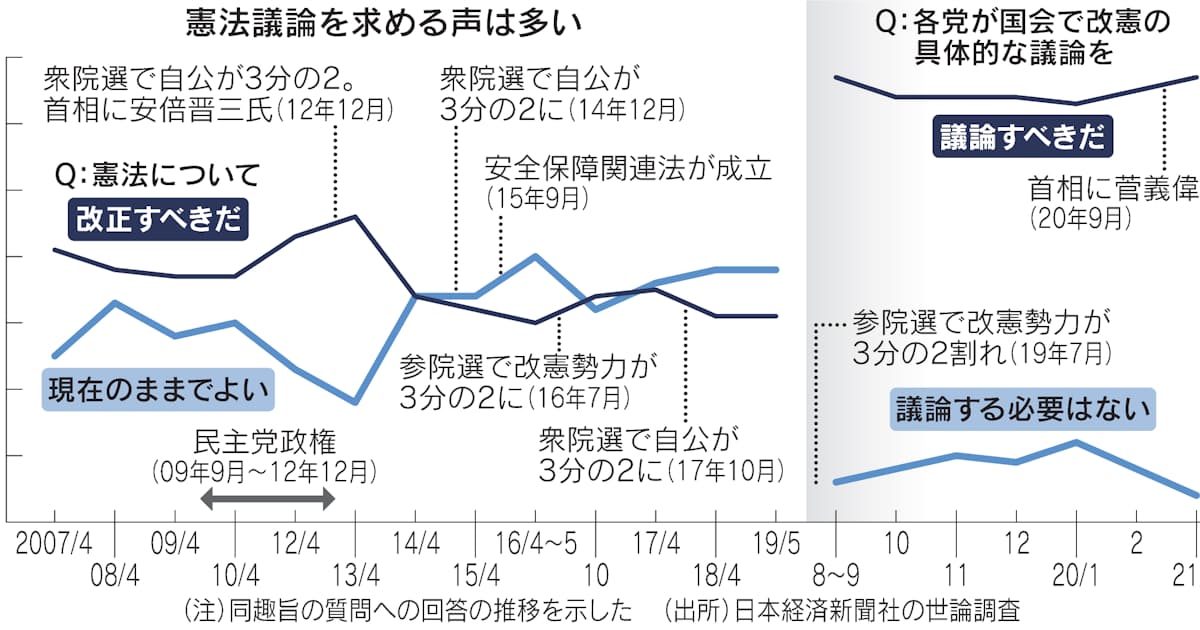 - 改憲「議論すべき」高水準 日経調査で7割超続く - 日本経済新聞